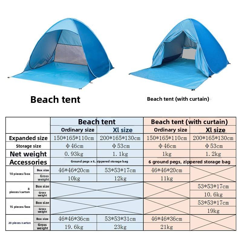 Tente de plage (avec rideau) xl taille 200x165x130cm
