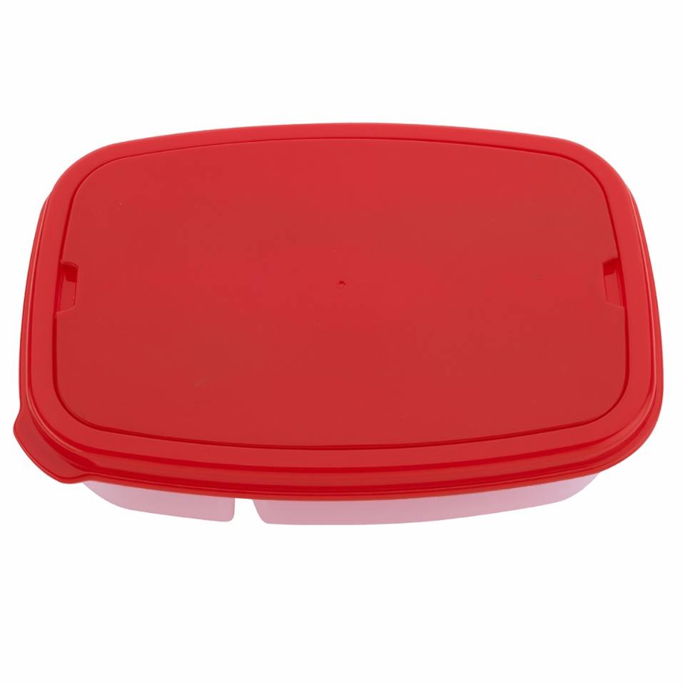 Boîte à lunch à 2 sections-Comprend un couteau et une fourchette en plastique dans un compartiment à couvercle sécurisé et est livré avec votre logo