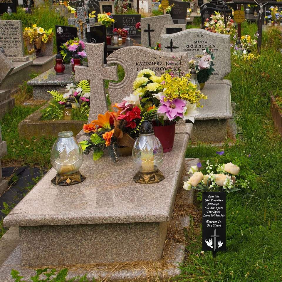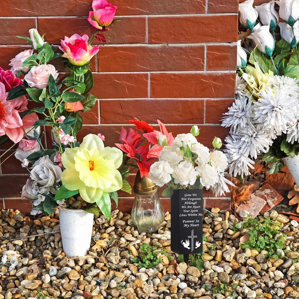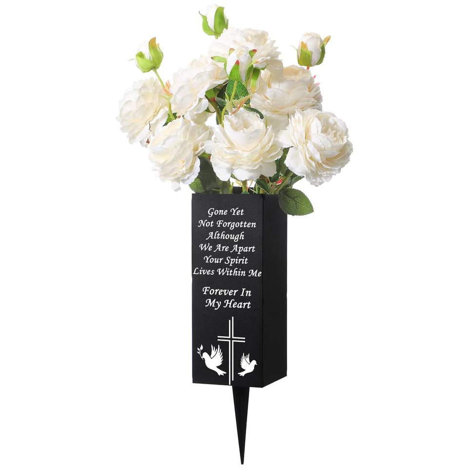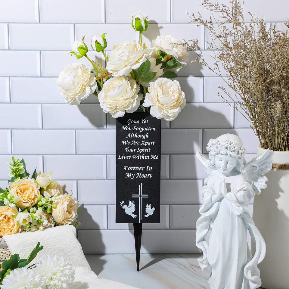 2 ensembles de décorations de tombes d'extérieur, vases à longs clous, fleurs artificielles durables pour cimetière, non décolorantes, Noël, Nouvel An, Fête des Mères