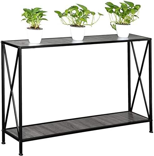 Table console en fer à 2 étagères avec accents en bois pour le salon ou l'entrée de l'appartement Meubles de décoration intérieure