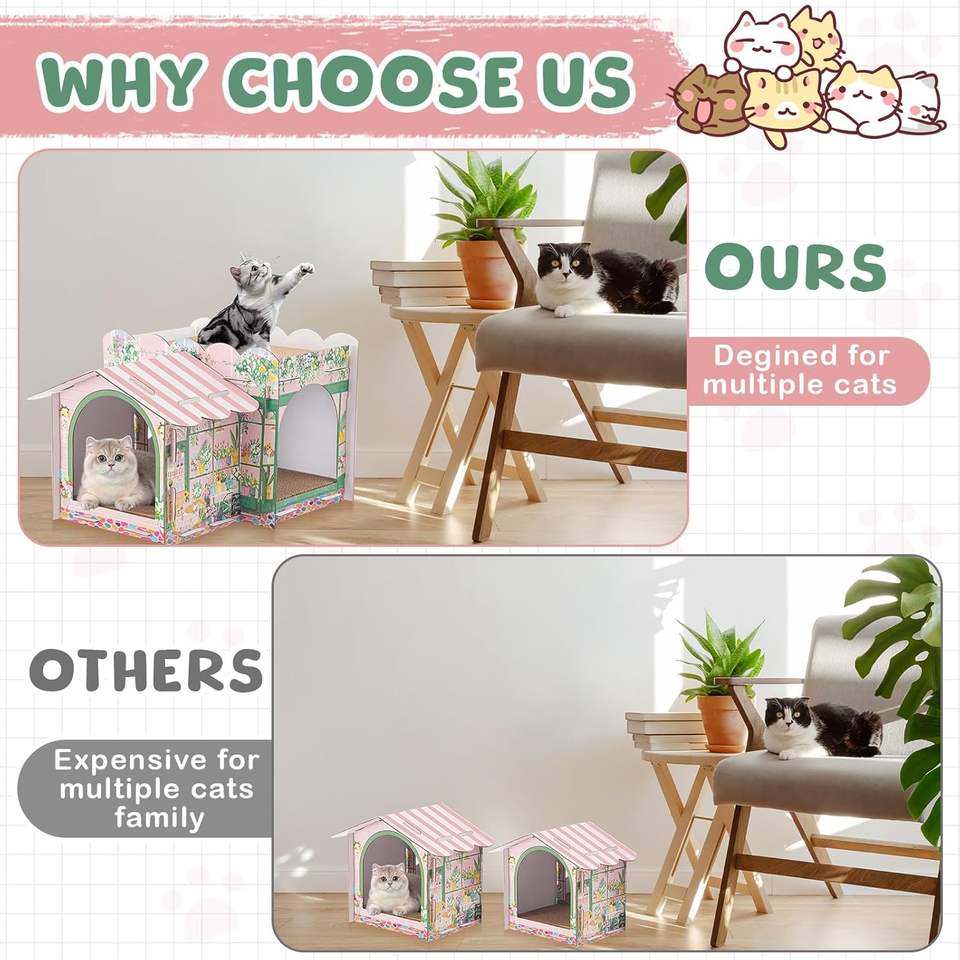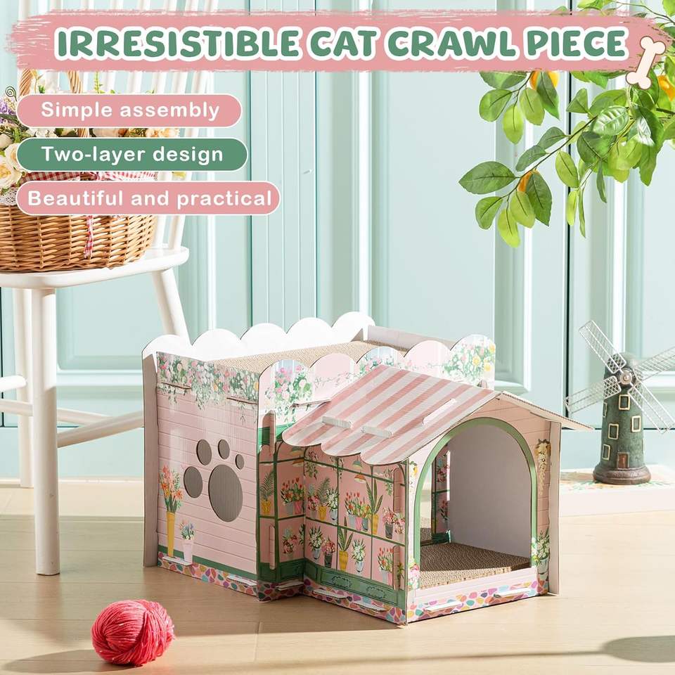 Cardboard Cat House with Scratcher Pad for Small Kitten