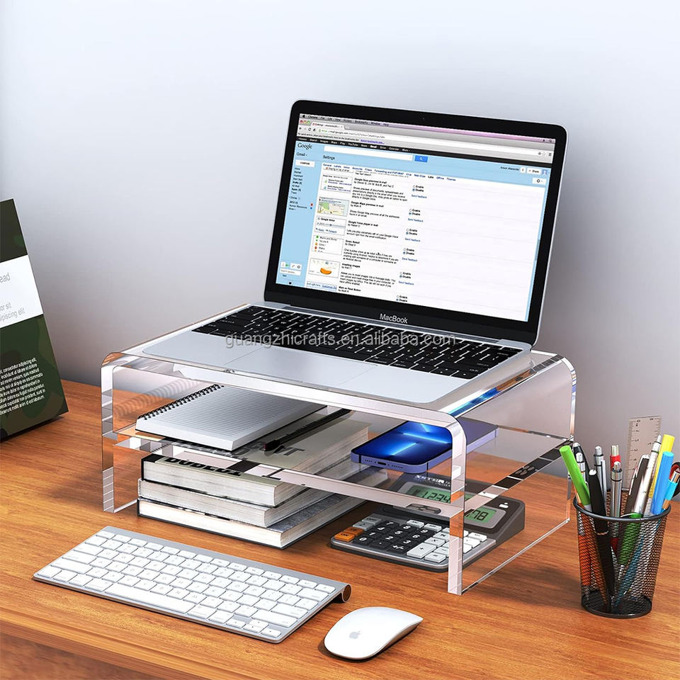 Acrylique Moniteur Riser Stand Clair Acrylique Ordinateur Portable Étagère Organisateur
