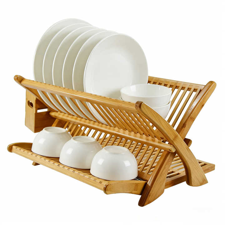 Égouttoir à vaisselle pliable à 2 niveaux en bambou pour cuisine, avec double niveau, pour évier, plateau de séchage et rangement, organisateur et présentoir