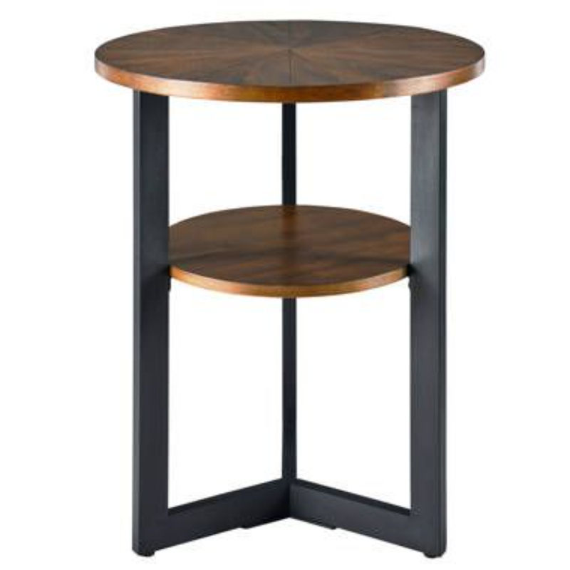 Table à manger ronde à 2 niveaux en bois massif marron, style ferme, pour 4 personnes, meubles de salle à manger