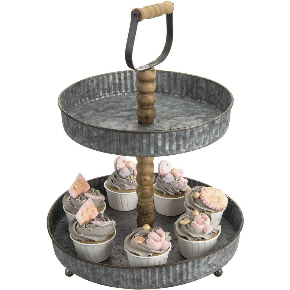 Support à gâteau en métal galvanisé à 2 niveaux, parfait pour les mariages, les fêtes et les desserts Design durable et élégant