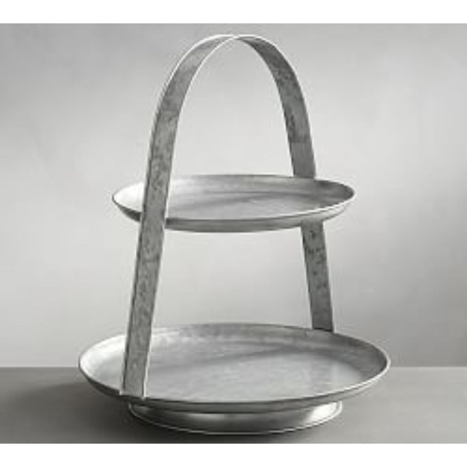 2 Tier Galvanized Metal Storage Stand with Copper Frame Rustic Farmhouse Kitchen Organizer Display Rack for Countertop Home Use