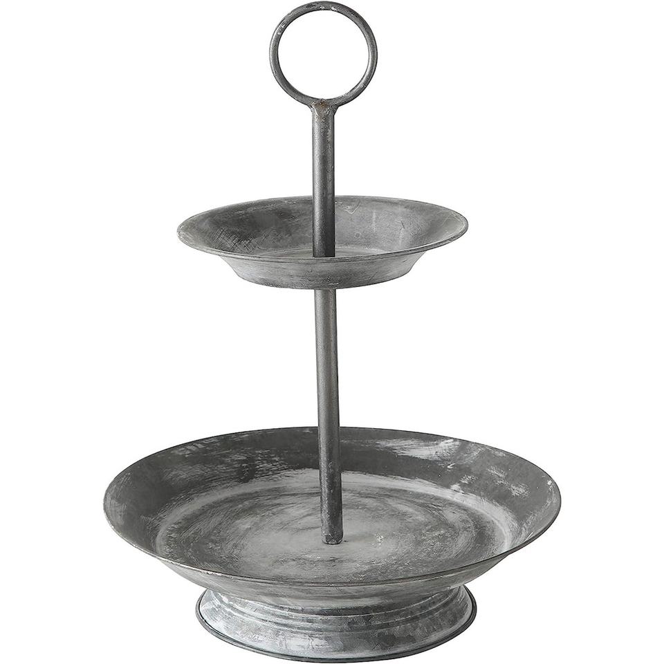Support à gâteau en métal galvanisé à 2 niveaux, robuste, parfait pour les mariages, les fêtes, les présentoirs de desserts, design durable et élégant