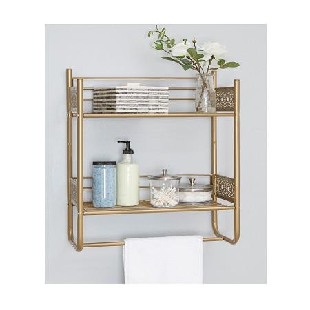 Support de rangement pour salle de bain à 2 niveaux, couleur or et fer, taille et forme personnalisées, support pour salle de bain de qualité supérieure à vendre
