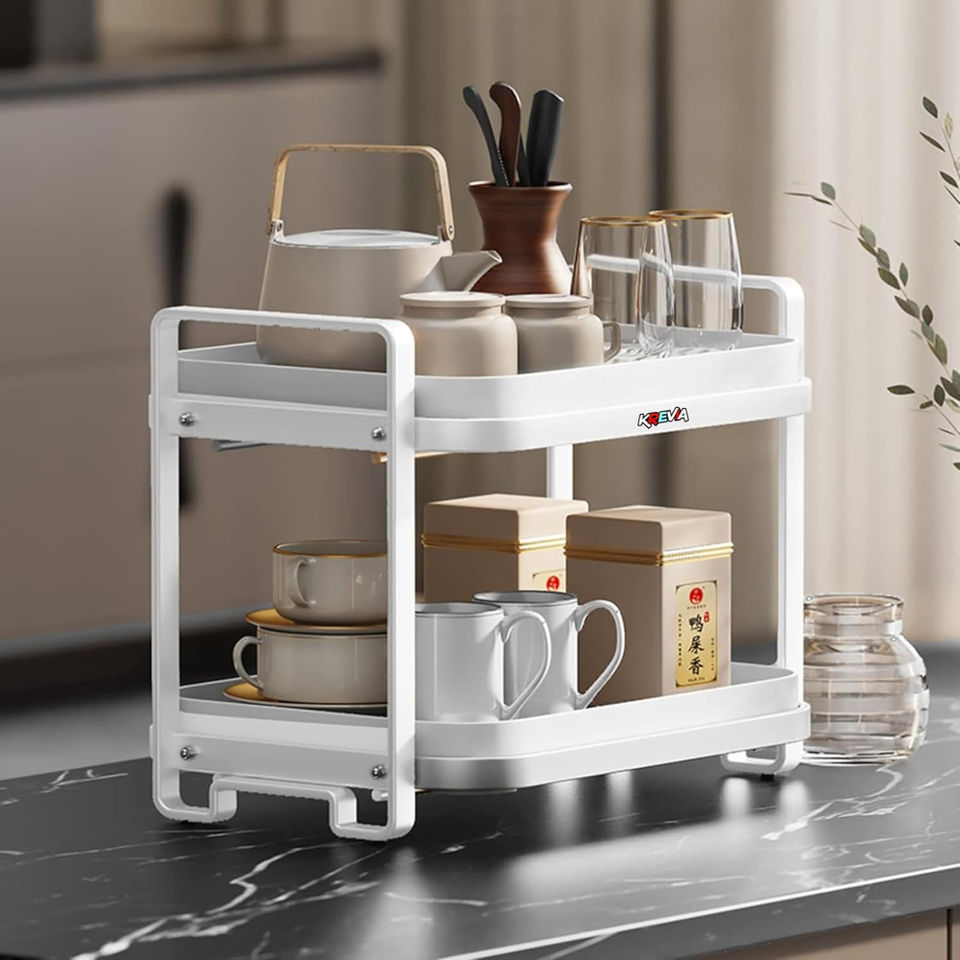 Étagère de rangement à 2 niveaux pour comptoir de cuisine, support de séchage pour tasses en métal blanc et organisateur de verres, étagère gain de place pour la cuisine à domicile