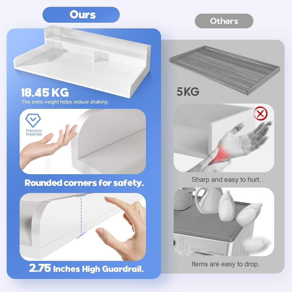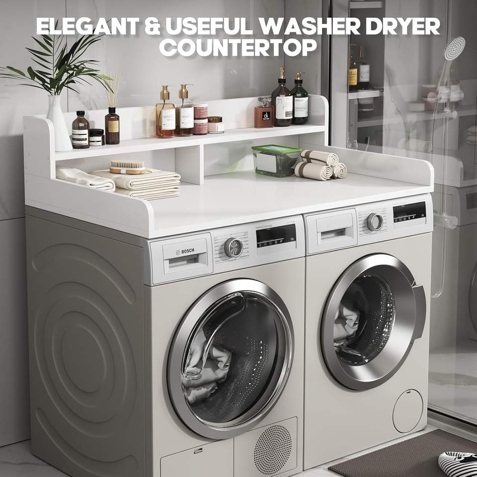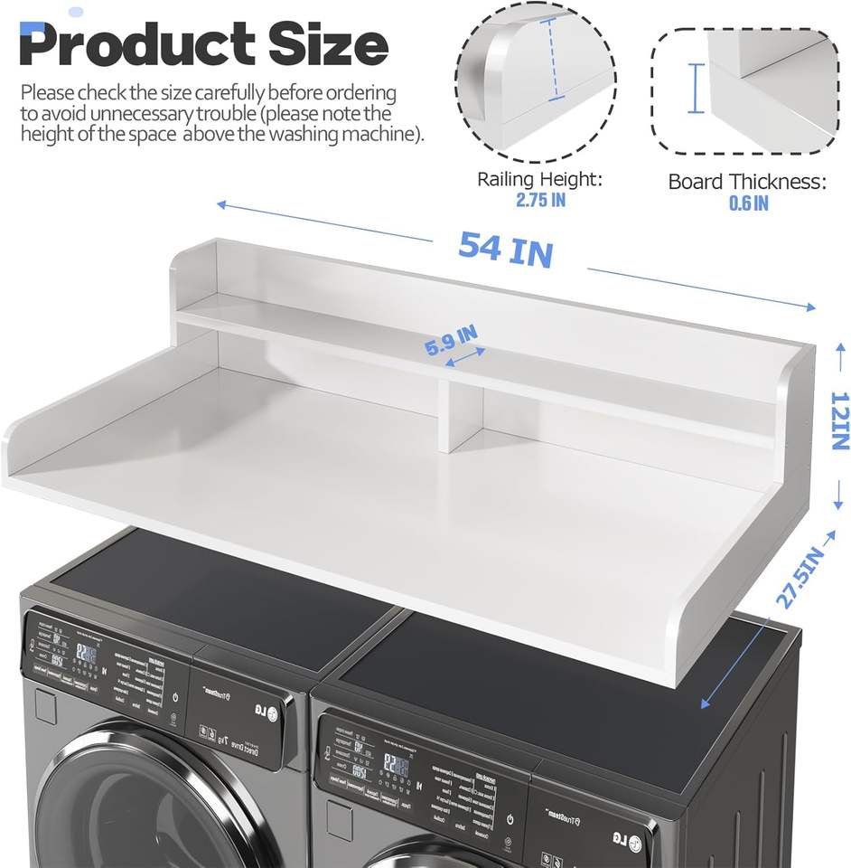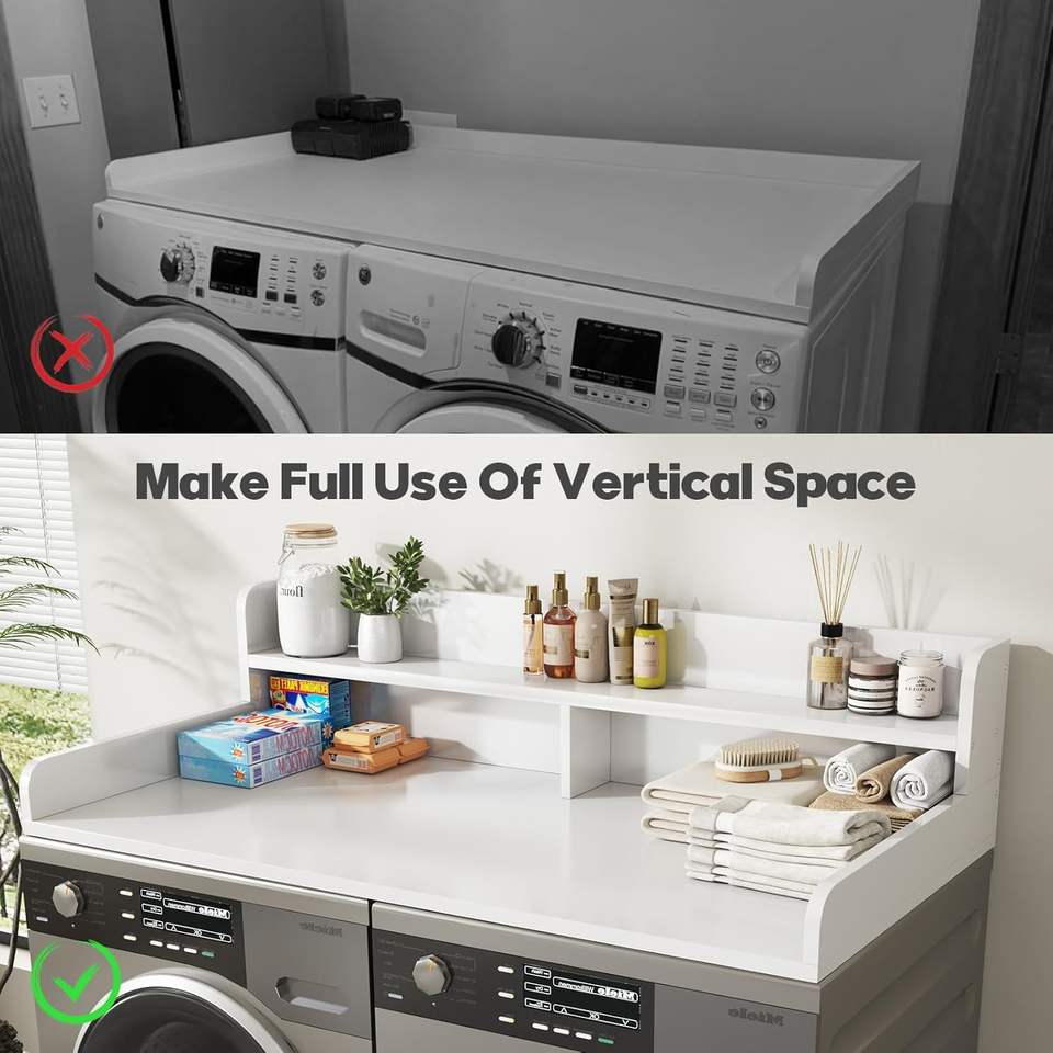 Étagère MDF à 2 niveaux, grand espace, 54x27,5x12 pouces, mobilier moderne pour la maison, revêtement antidérapant pour comptoir, protection pliable pour lave-linge et sèche-linge