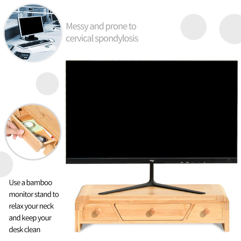 Name:Bamboo Desk Shelf Monitor Stand Holder with Storage Drawer