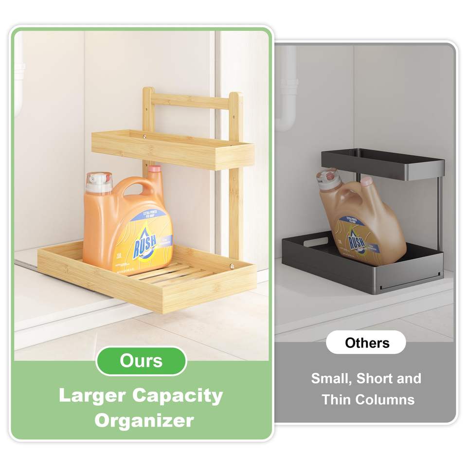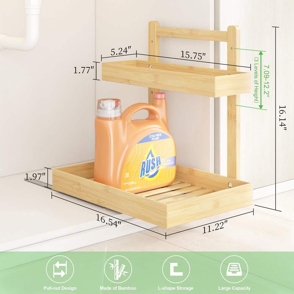 Armoire coulissante à 2 niveaux Organisateur vertical coulissant sous l'évier Étagères de rangement pour salle de bain, cuisine et salle de bain à usages multiples