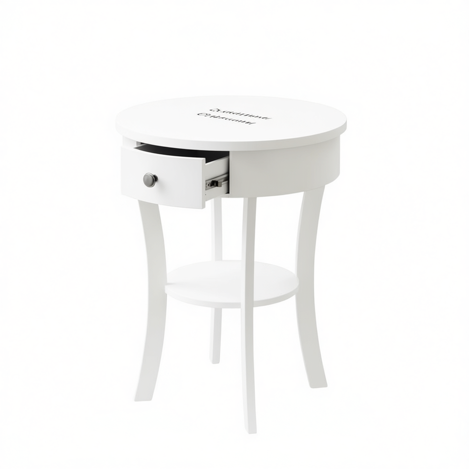 Table d'appoint ronde à 2 niveaux avec tiroir ouvert Meubles de salon en bois