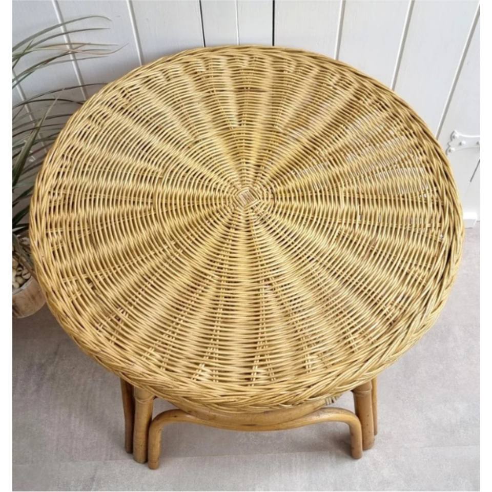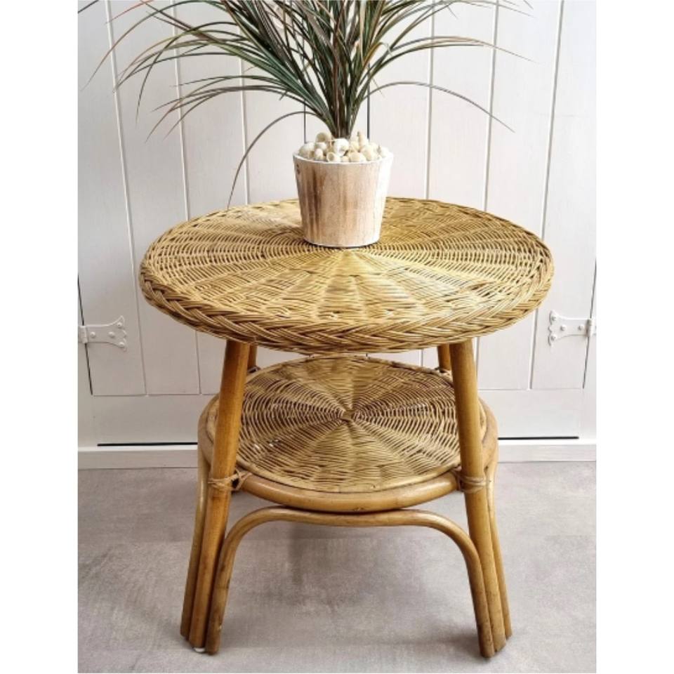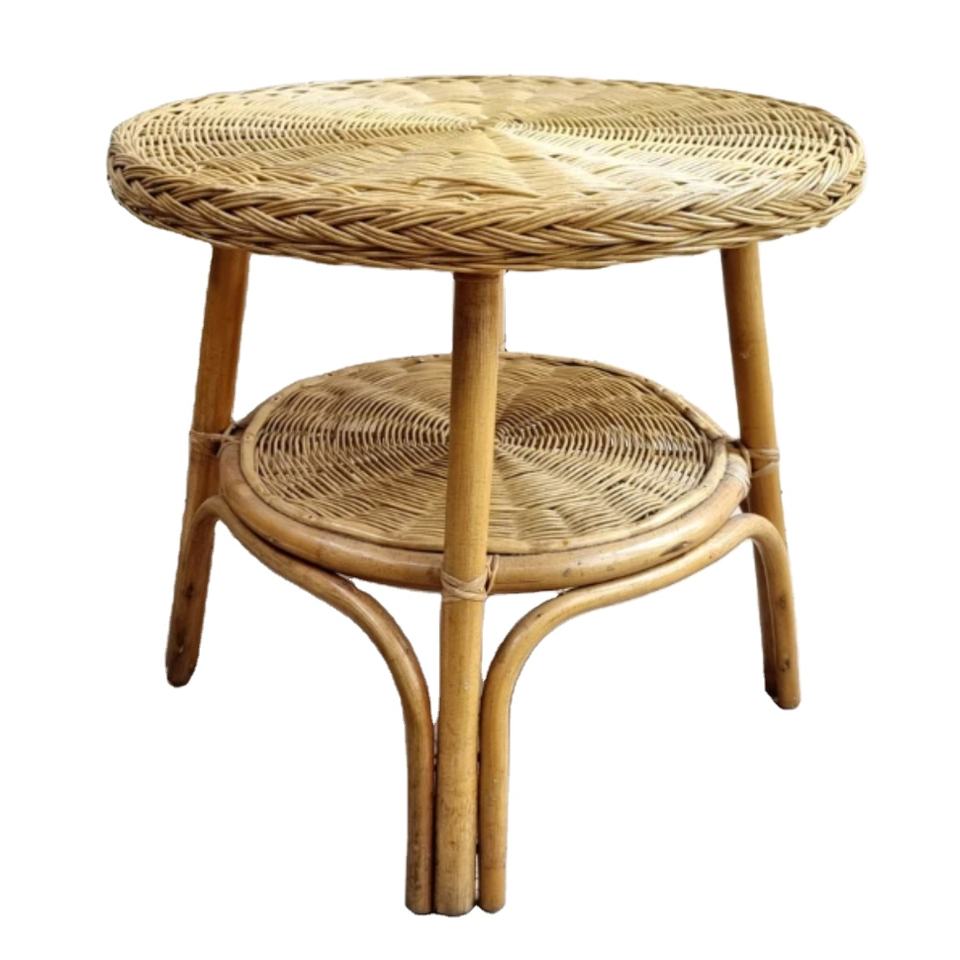 Table centrale ronde en rotin à 2 niveaux Table en osier tissé à la main avec base en bois Meubles de salon naturels Tables basses