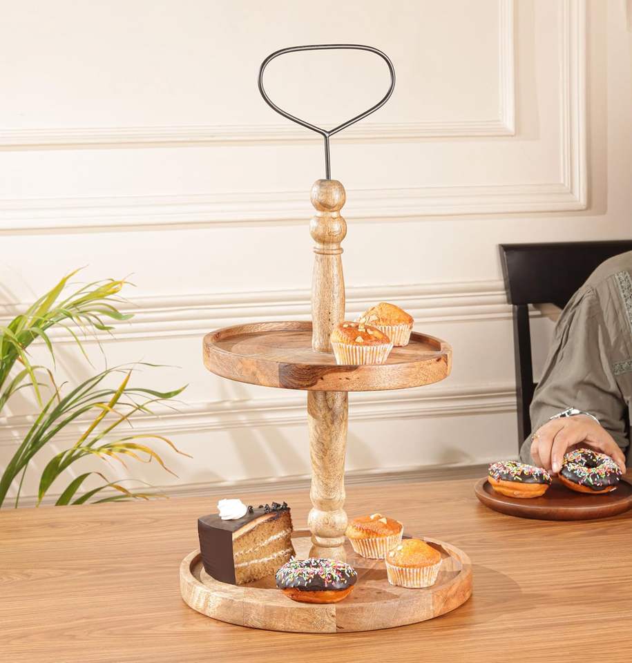 Support à cupcake en bois de ferme rustique à 2 niveaux pour les mariages, les fêtes, la maison et les desserts.