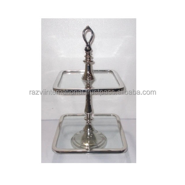Support à gâteau à 2 niveaux en acier inoxydable, plateau de service en verre, écologique, compatible lave-vaisselle, outil de présentation haut de gamme pour servir les gâteaux
