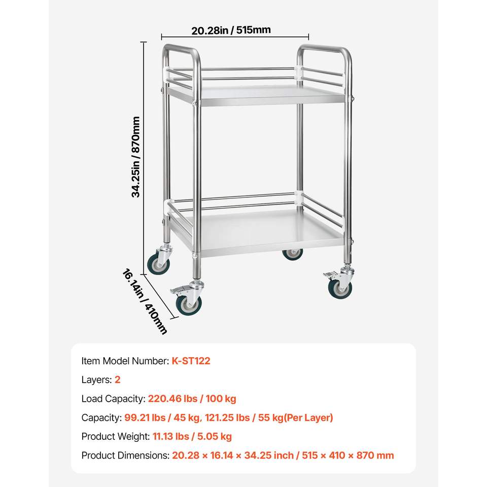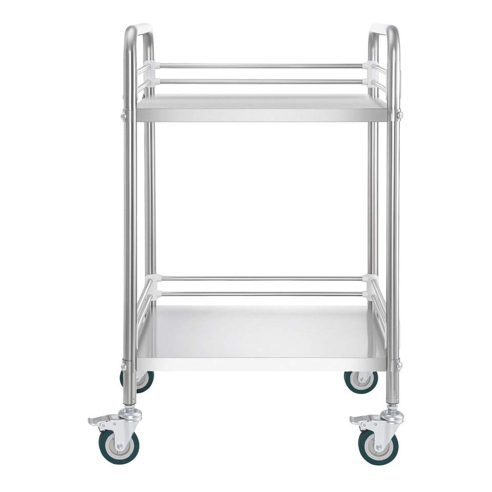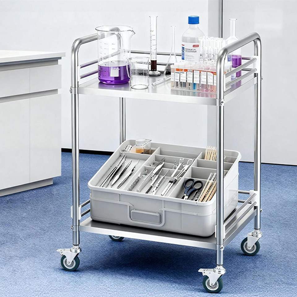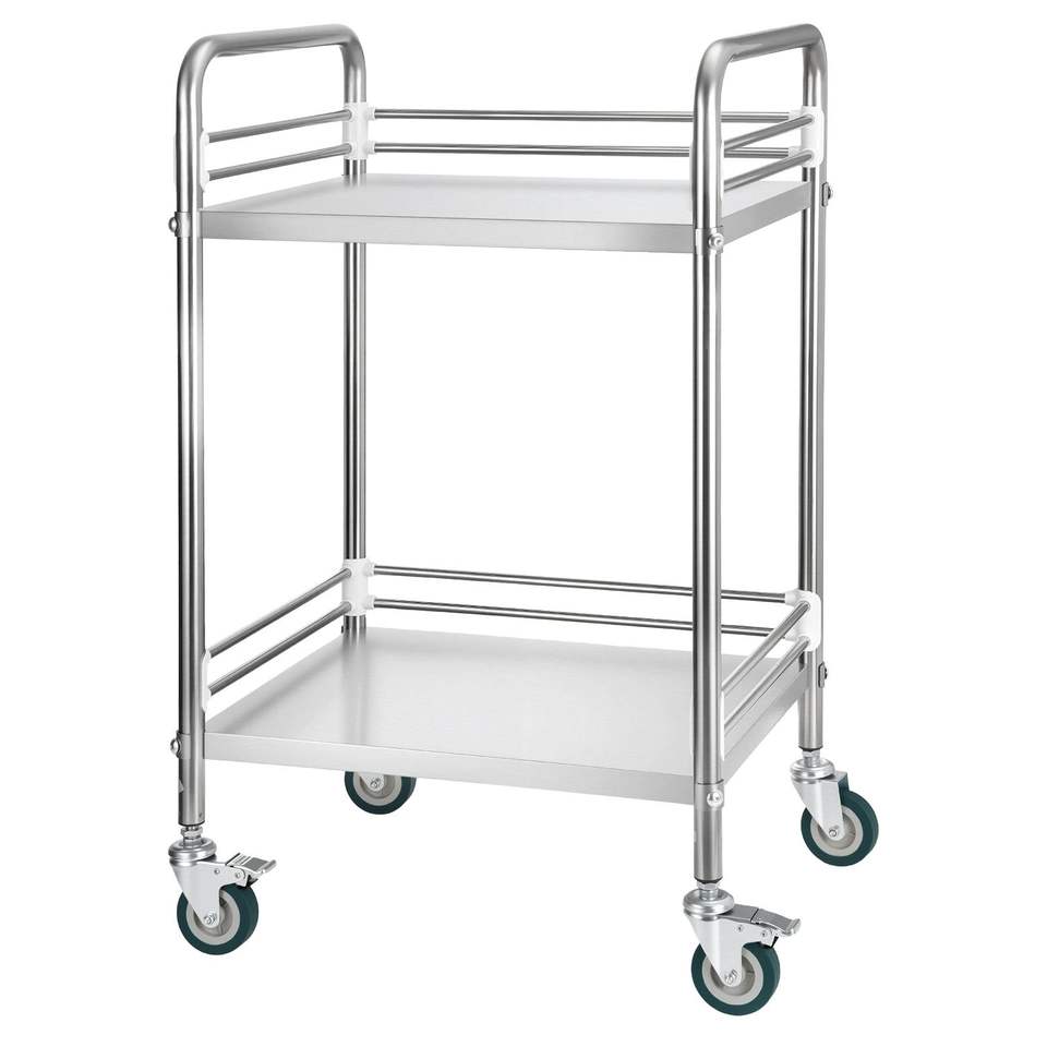 Chariot utilitaire de laboratoire à 2 niveaux en acier inoxydable avec roues verrouillables, chariot de service mobile robuste pour clinique, chariot de rangement pour plateaux