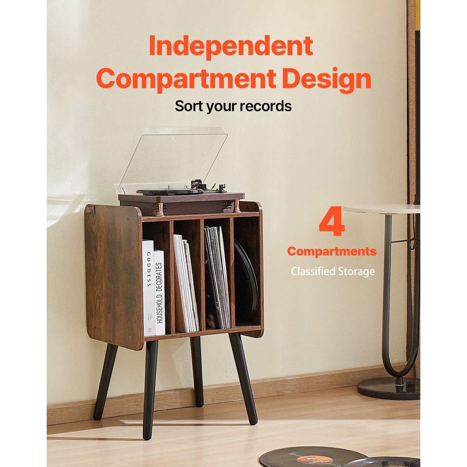 Support de platine tournante à 2 niveaux avec 4 armoires, rangement pour disques vinyles en bois, supports pour CD, capacité de 100 albums