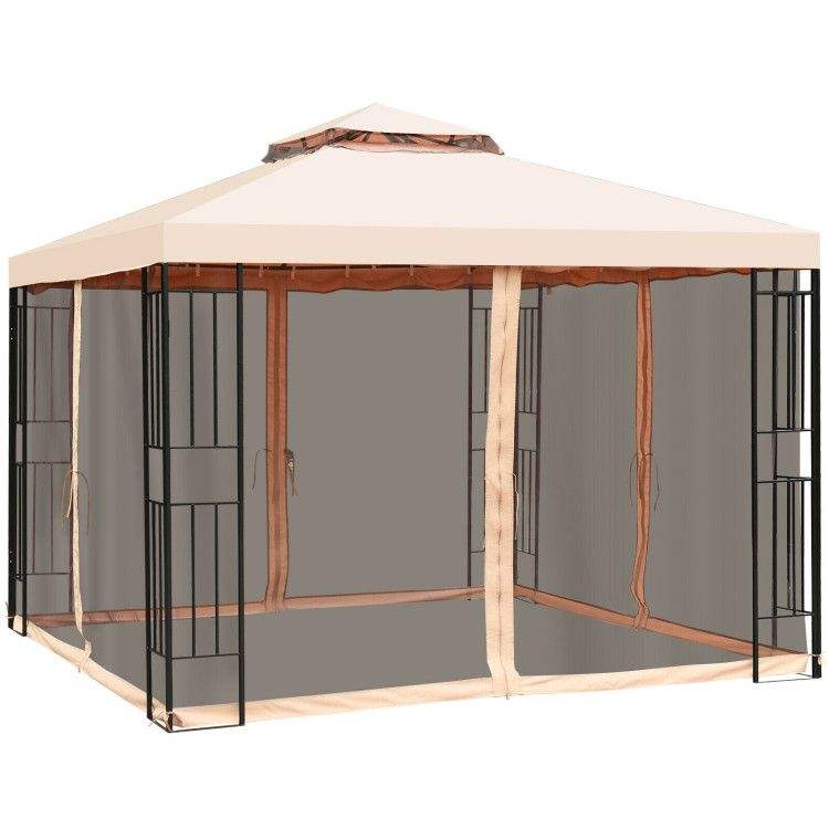 Auvent en métal ventilé à 2 niveaux 10x10 pieds avec moustiquaire pour gazebo ou pavillon de pergola
