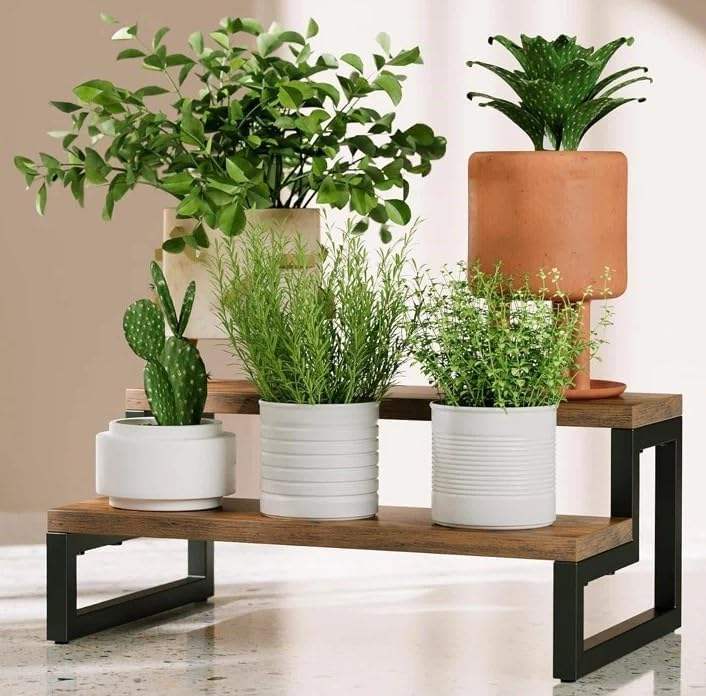 Étagère à épices en bois à 2 niveaux pour comptoir | Étagère de rangement multifonctionnelle pour la cuisine | Support de rangement de cuisine en bois et métal pour épices