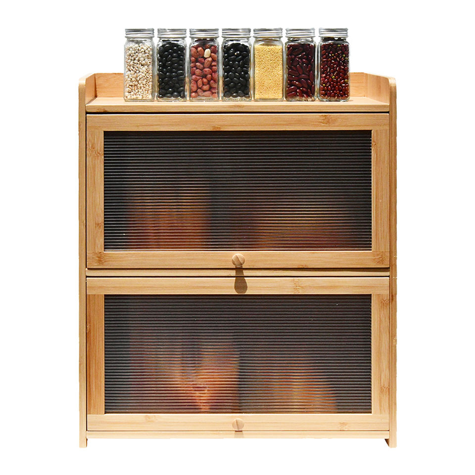 Organisateur de rangement multifonctionnel à 2 niveaux en bambou Extra Large Armoire de rangement de comptoir autoportante pour la cuisine