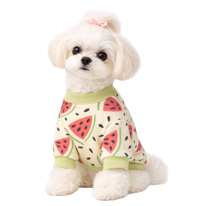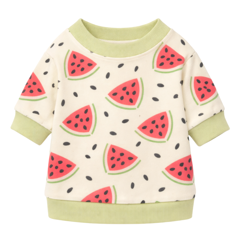 Sweat-shirt pour chien à imprimé pastèque, en coton léger, pull-over doux, style estival, vêtements pour animaux de compagnie pour chiens de petite race
