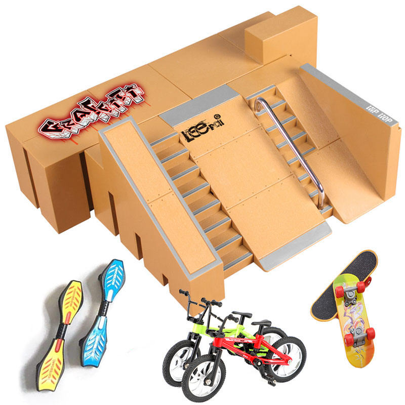 2 Waveboards 2 Bikes Mini Finger Skateboards Skate Park Kit Ramp Parts for Fingerboard Skate Park Ultimate Parks Training Props