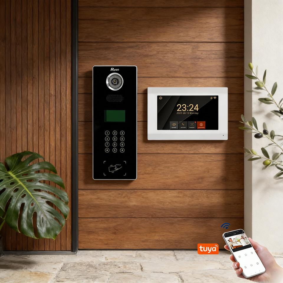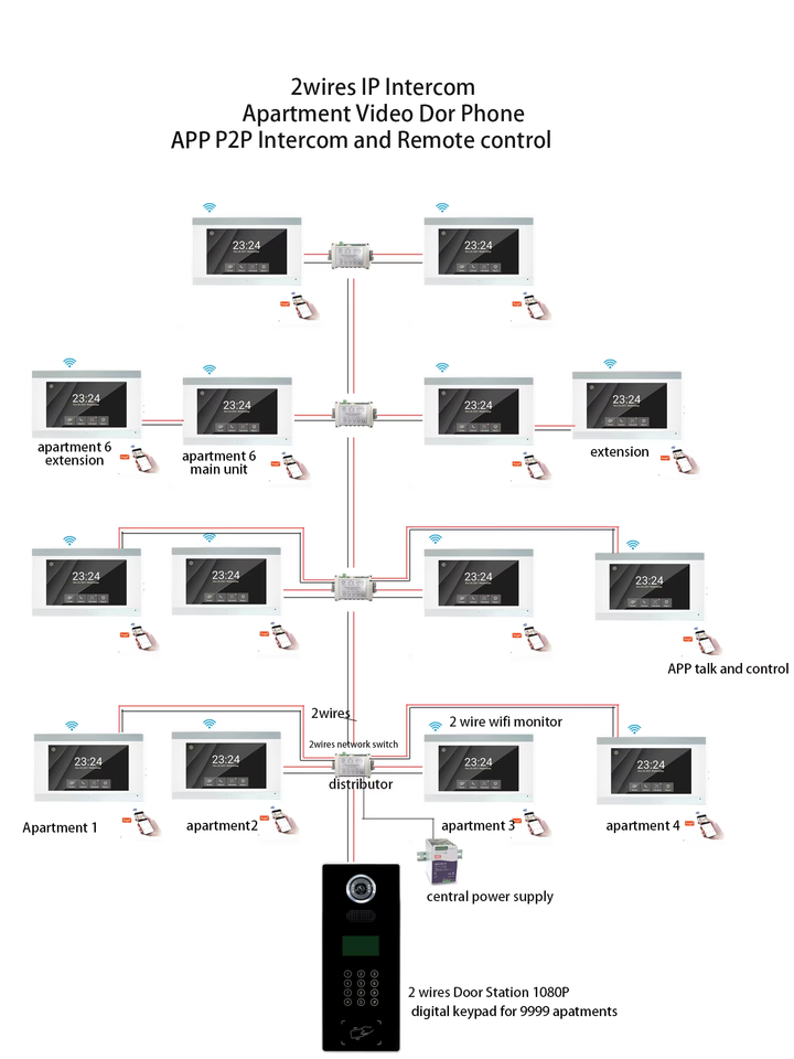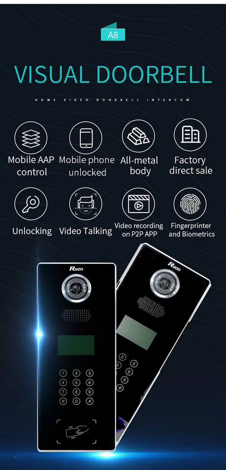 2 fils 7 pouces 120. Vidéophone domestique à objectif grand angle et configuration standard à 8 boutons pour immeubles résidentiels