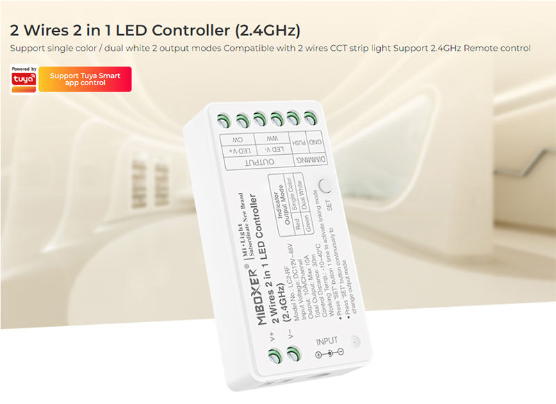 2 Fils CCT CCT Bande Lumineuse Milight Miboxer LC2-RF Couleur Réglable Simple Couleur Double Blanc Tuya Smart LED Controller