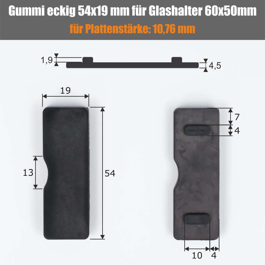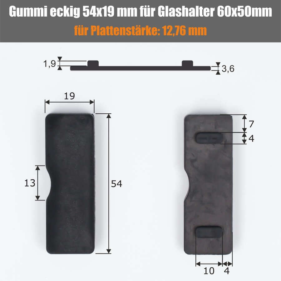 2 X Household Rubber 54x19 mm for Square Glass Holder 60x50/60 mm with 6-12.76 mm PS