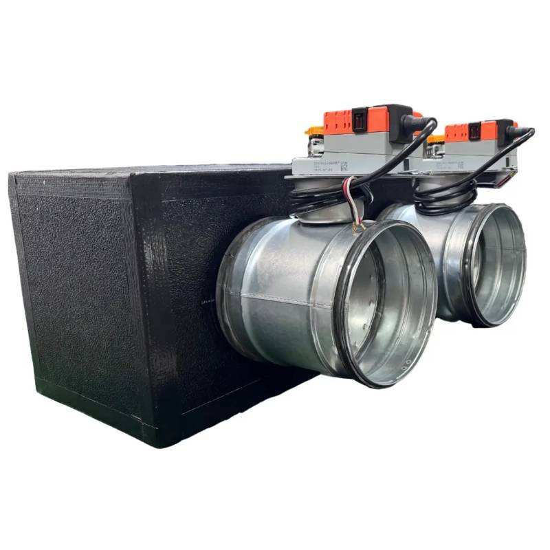 Plénum en mousse de polyuréthane à 2 zones avec registres motorisés de 160 ou 200 mm, systèmes CVC Lindab avec connexion VMC latérale