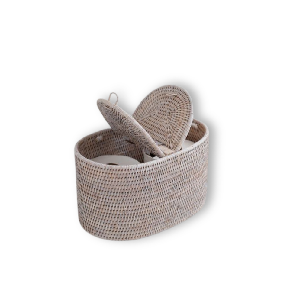 Porte-mouchoirs en rotin à 2 compartiments pour la cuisine et la décoration intérieure, couvercle de boîte à mouchoirs élégant et transparent