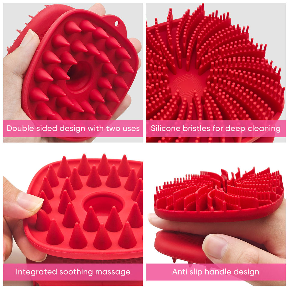 2 dans 1 brosse de shampooing de cuir chevelu de massage de cuir chevelu de silicium