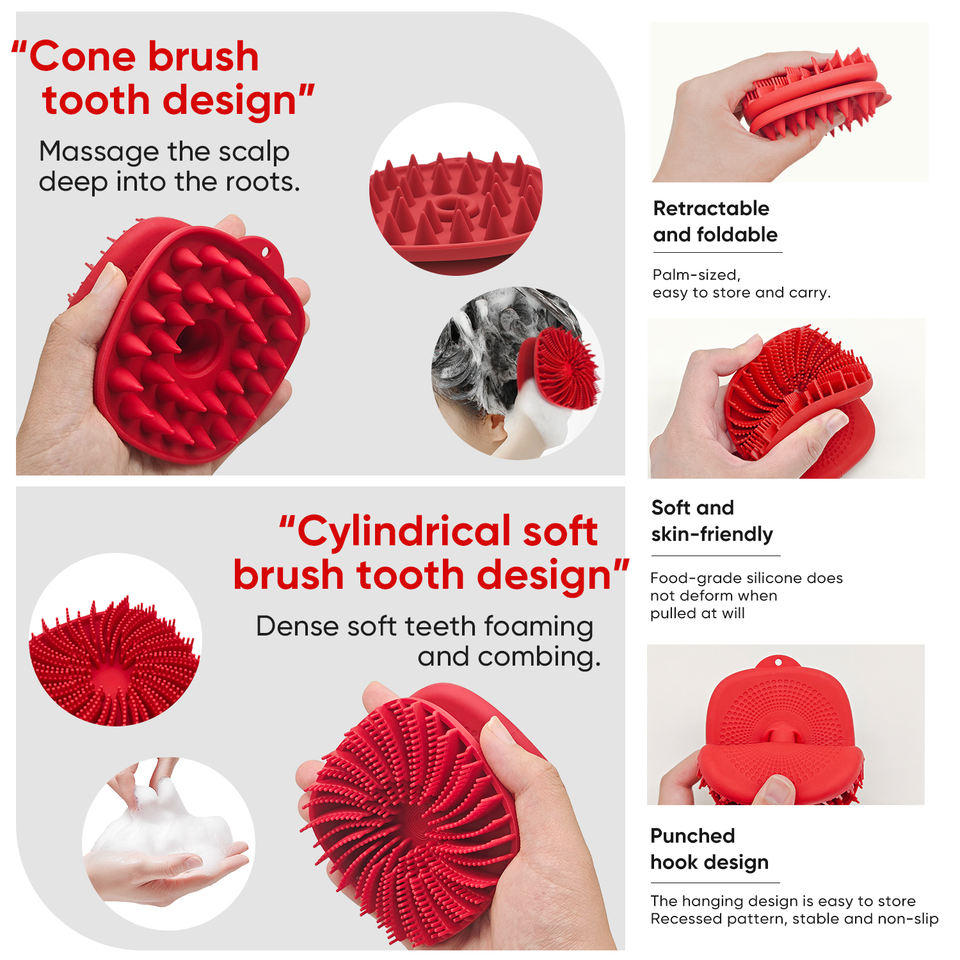 Fonction:2 dans 1 brosse de shampooing de cuir chevelu de massage de cuir chevelu de silicium