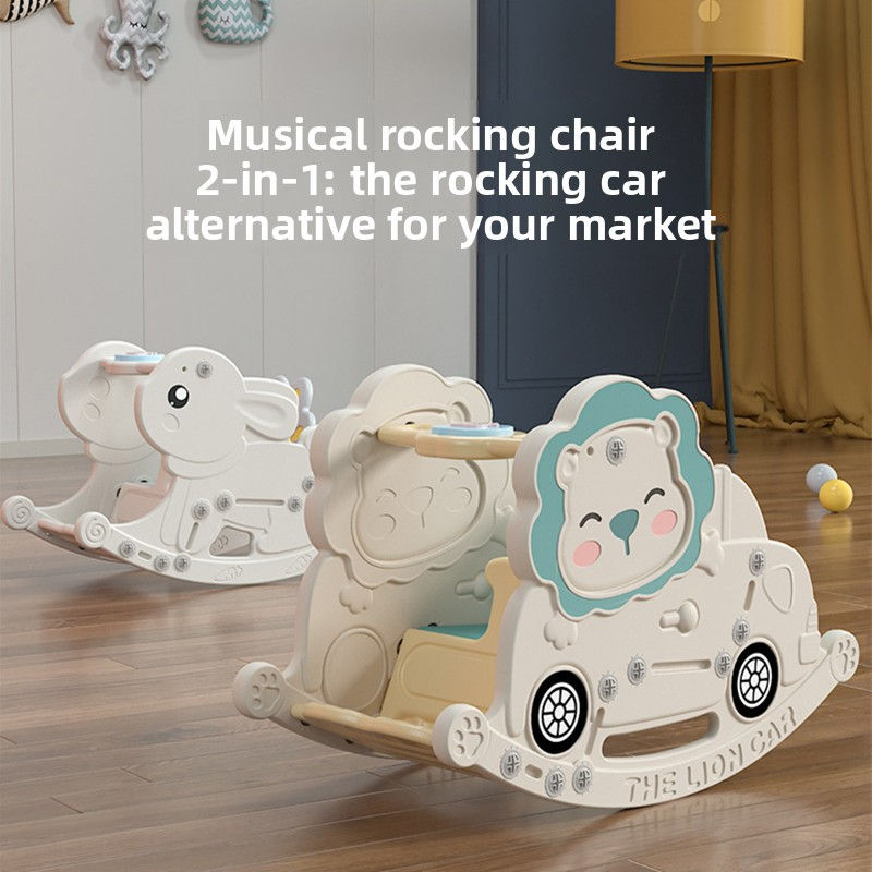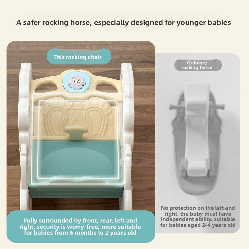 Cheval à bascule et chaise 2-en-1 pour bébé, balançoire électrique multifonctionnelle grande et épaisse pour intérieur avec jouets musicaux pour nouveau-nés de 0 à 24 mois