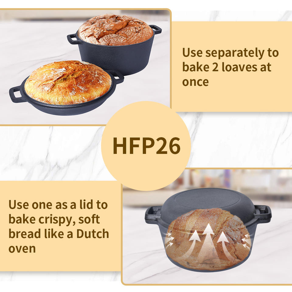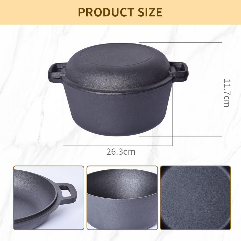 Nom du produit:Cocotte en fonte 2 en 1, double faitout et poêle à frire