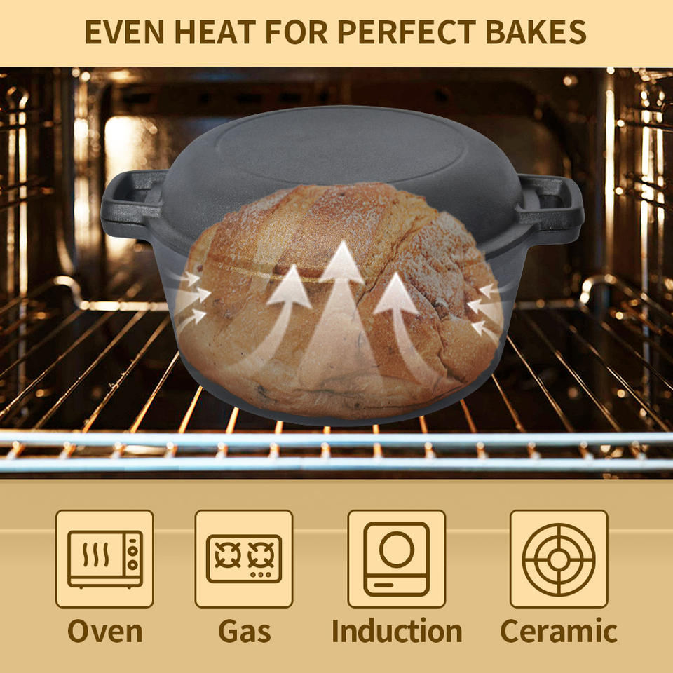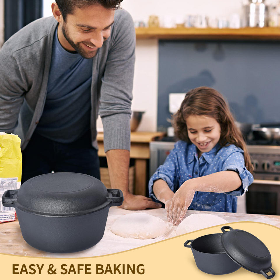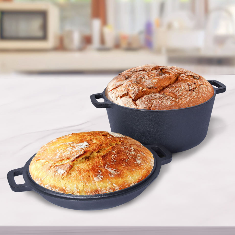 Ensemble 2-en-1 : Cocotte en fonte et poêle à frire, pré-culottée, ronde, pour pain