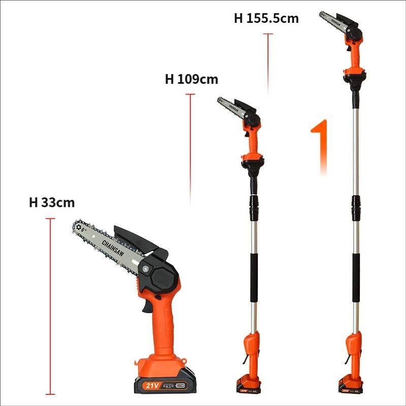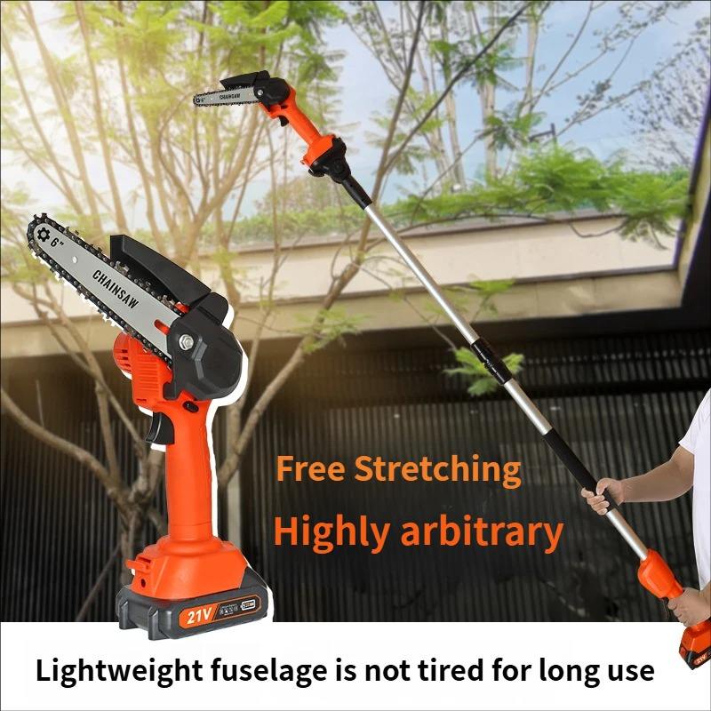 Scie à chaîne sans fil 2-en-1 avec perche télescopique pour l'élagage des hautes branches, alimentée par batterie lithium-ion 21V, pour la coupe de branches en bois