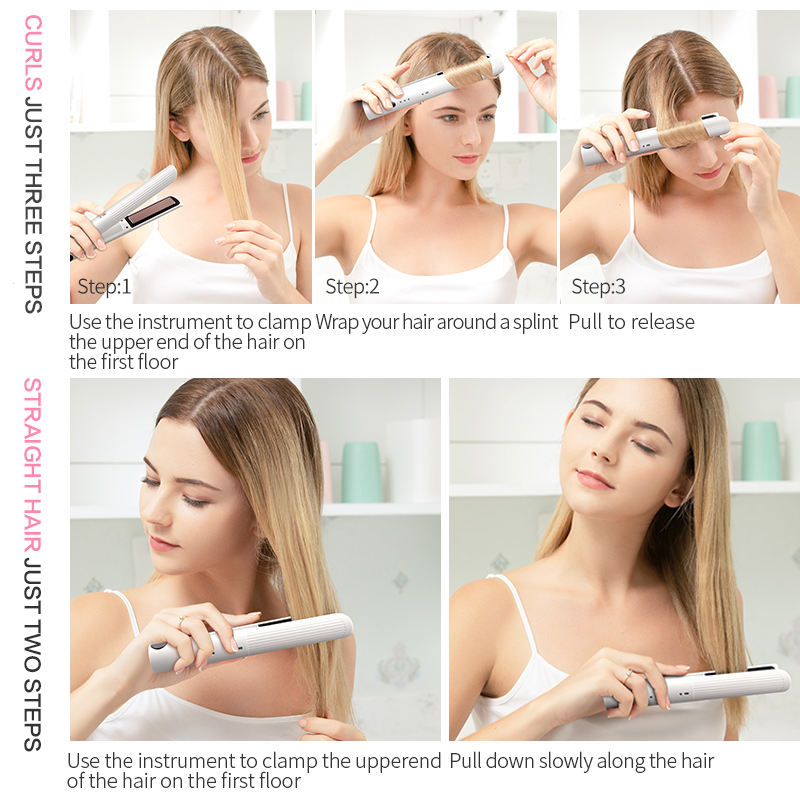 Lisseur-boucleur sans fil 2-en-1 PTC LED avec plaques flottantes 3D, portable, rechargeable par USB, garantie 1 an, pour usage domestique, camping-car et hôtel