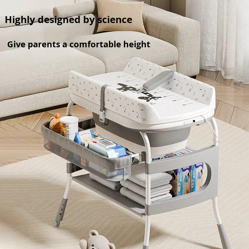 Table à langer 2 en 1 pour nouveau-né, multifonctionnelle, pliable, soins pour bébé de Hangzhou avec massage tactile