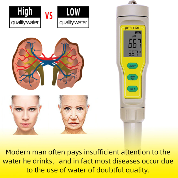 Testeur de PH numérique 2 en 1 ATC PH-03 LCD PH/Temp Meter Aquarium Safe Pool Water Wine Urine Tester Analyzer High Quality