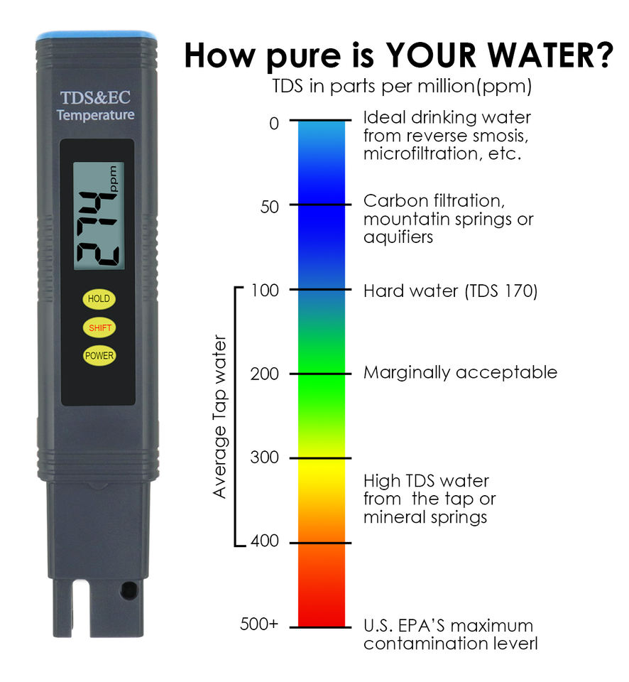 Plage de mesure TDS:0 à 9999 ppm