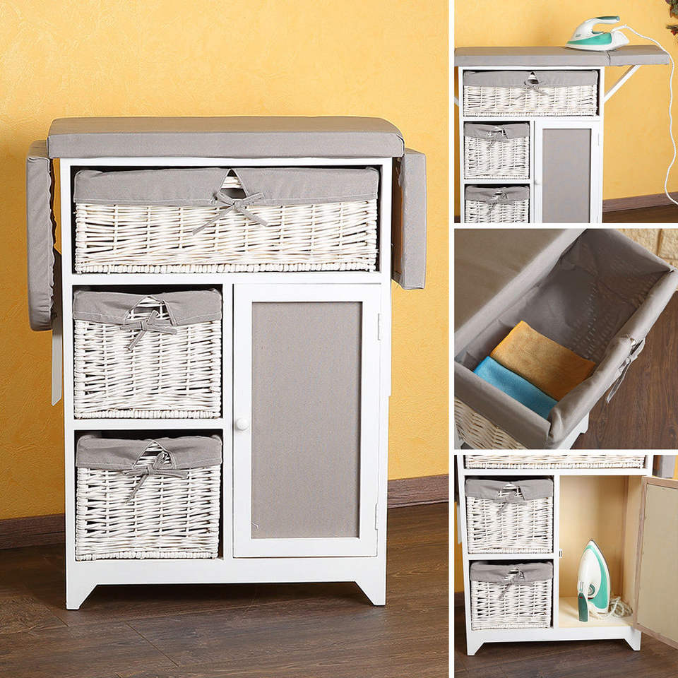 Commode 2 en 1 + Table à repasser avec paniers en osier
