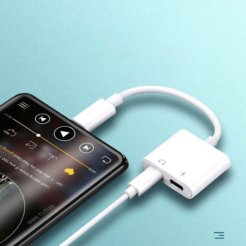 Câble adaptateur iPhone à double interface 2-en-1 Répartiteur de casque audio et de charge et adaptateur d'écoute de musique