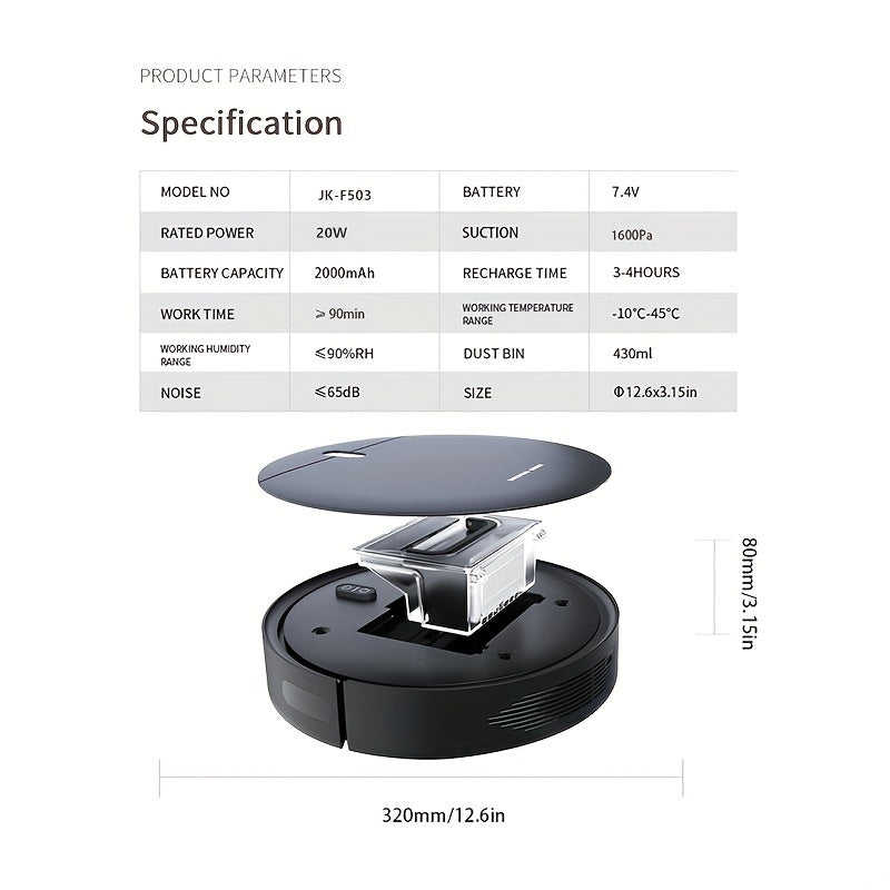 Aspirateur robot 2-en-1 double mode, aspiration des poils d'animaux, auto-recharge, pour sols durs et tapis à poils ras, 20W, bac à poussière 0,5L