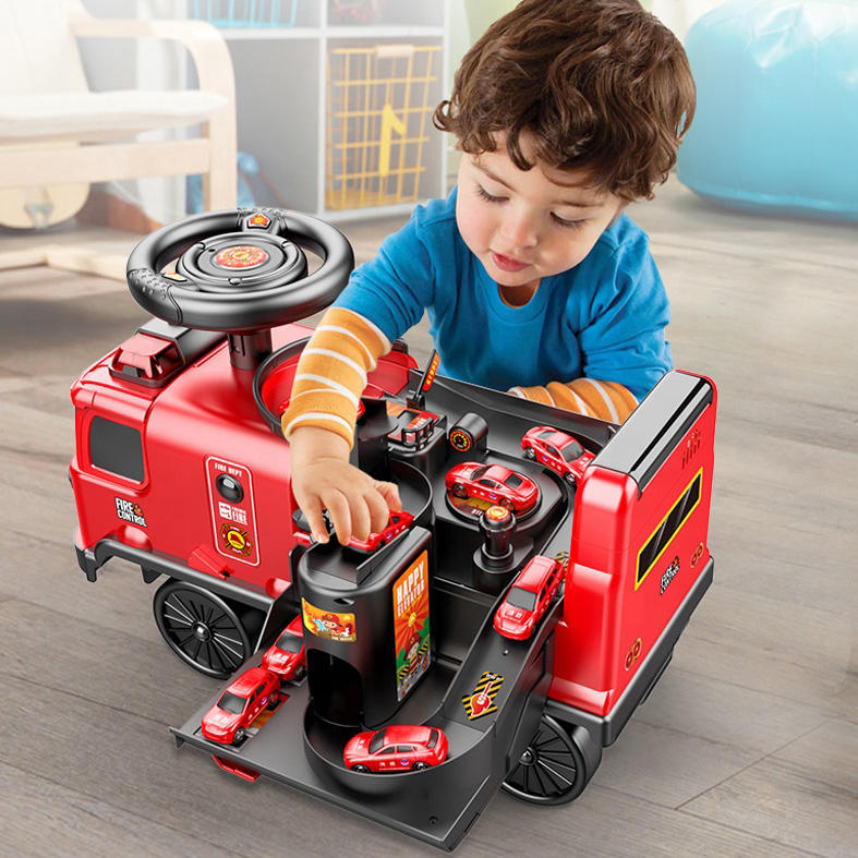 2 In 1 Fire Truck Ride On Car Toys Race Track Toy Sets Adventures Racing Firefighting For Kids Toddler Gifts