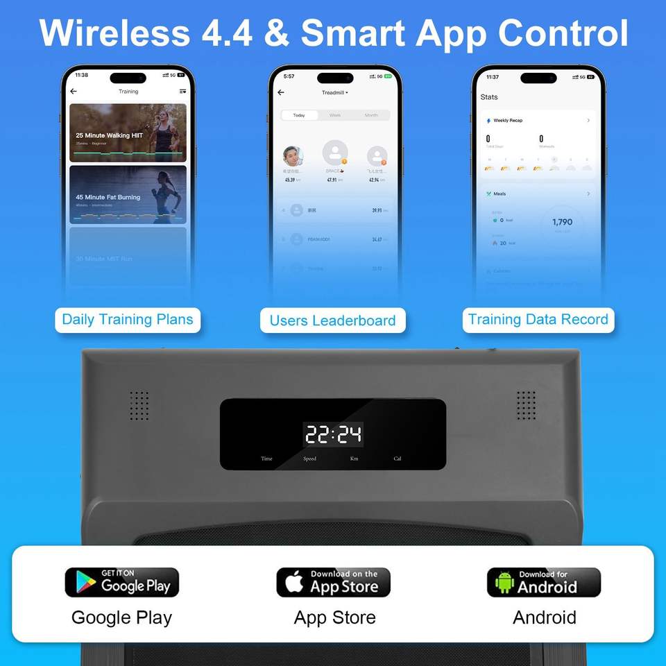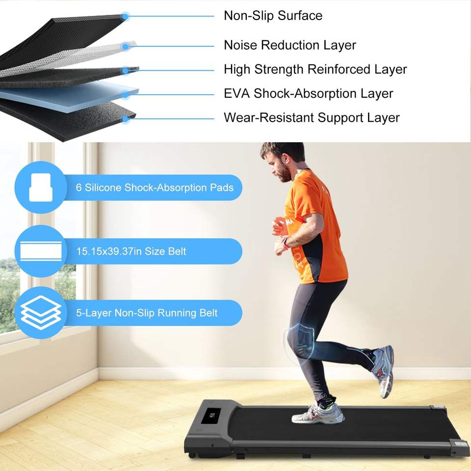 Tapis de marche et de course pliable 2-en-1 avec contrôle sans fil par application, installation facile, télécommande, pour utilisation au bureau