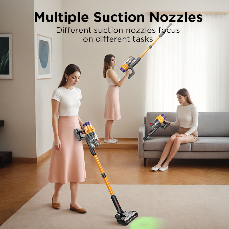 Aspirateur vertical sans fil 2-en-1, léger, avec lumière LED, pour nettoyage en profondeur à sec, forte aspiration pour sols durs
