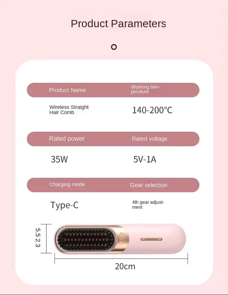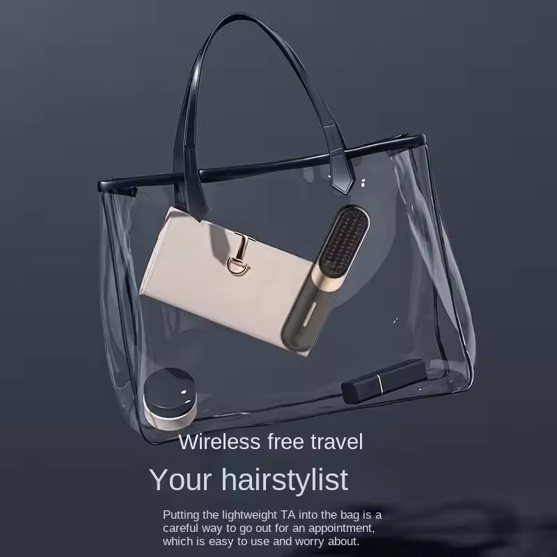 Peigne chauffant 2-en-1 rechargeable, brosse lissante électrique sans fil, mini brosse lissante portable