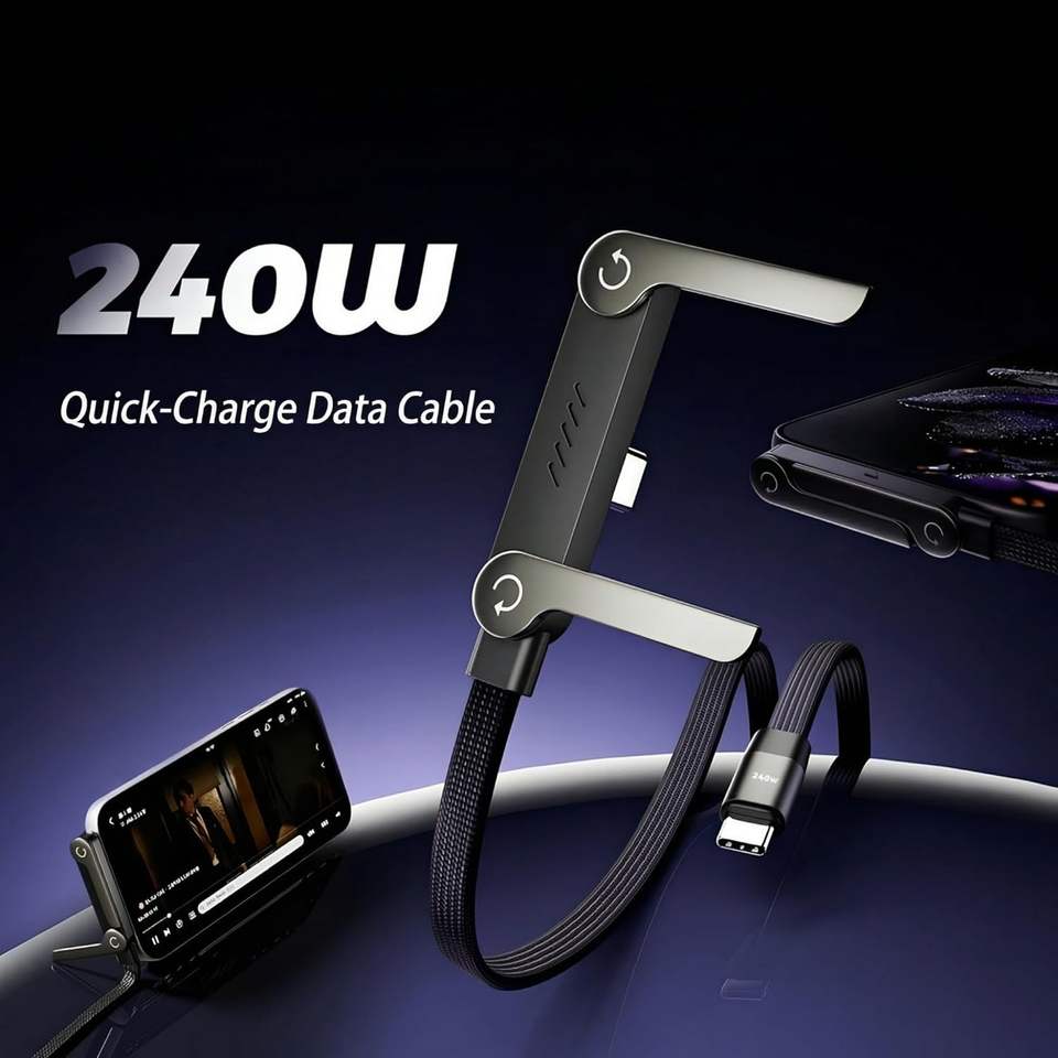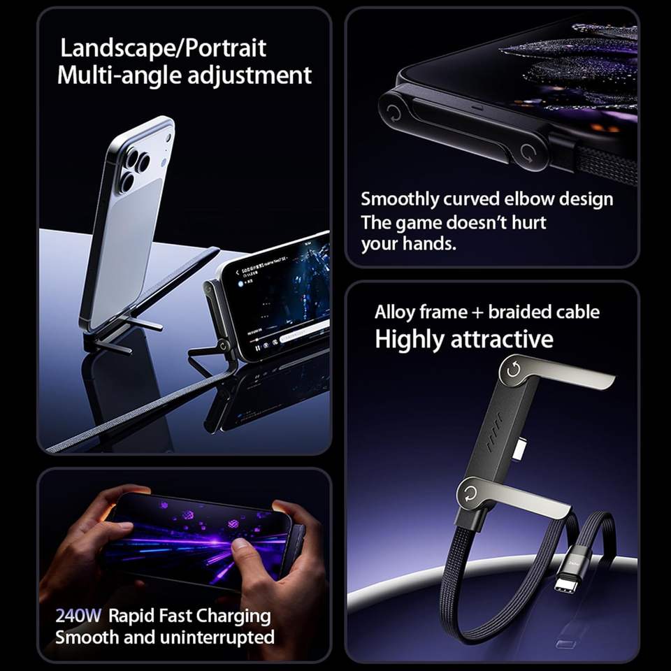 Support invisible 2-en-1 avec câble de charge USB-C réglable multi-angle (1,5 m) et charge rapide 240W pour smartphones